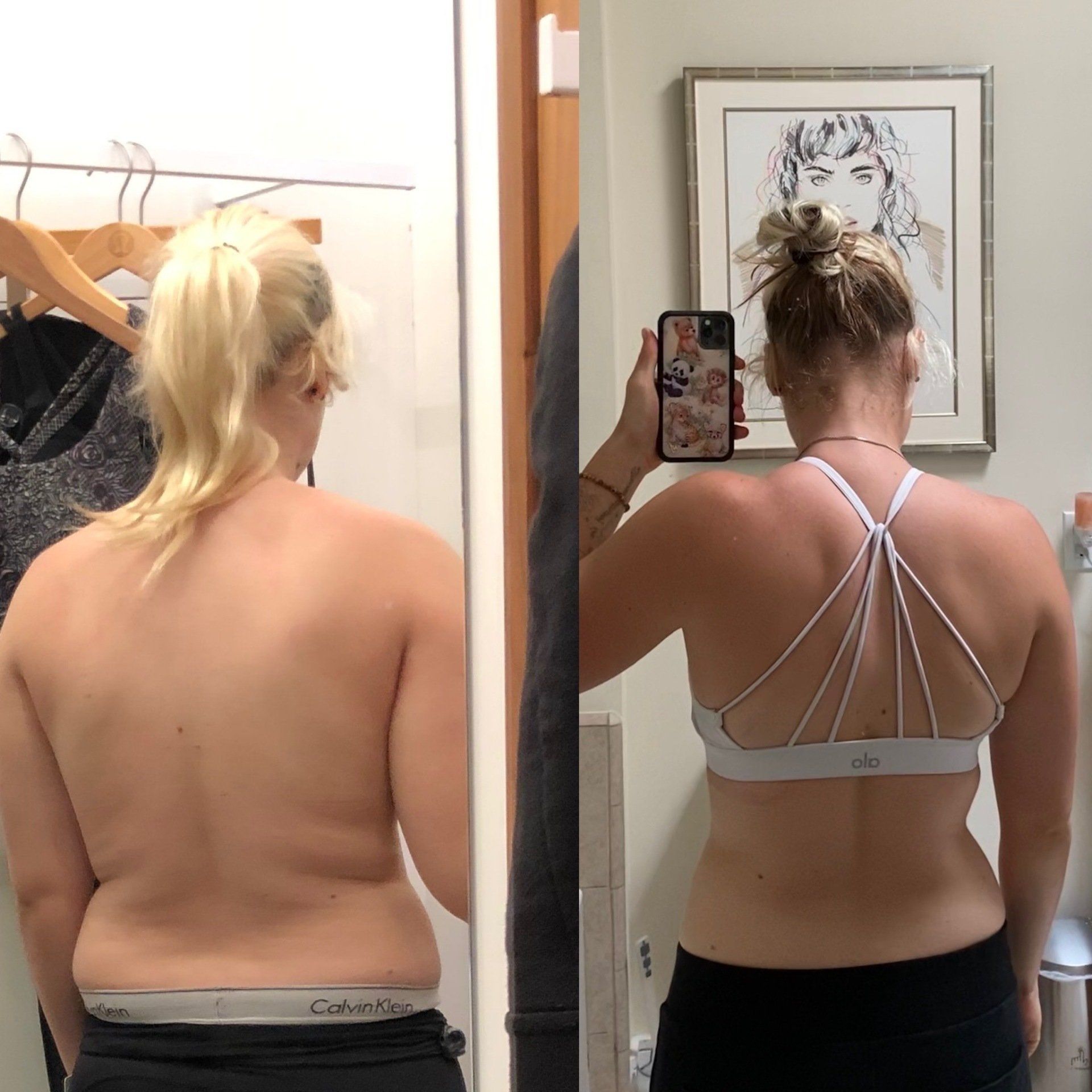 *Results shown in the middle were achieved with healthier nutrition and regular training. Portion control and low-carb eating were key to her success, but she also dedicated five days a week to her workouts.